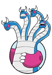 Hydra is a hydra. Sexless and self-propagating, Hydra lives alone in a cave. It does not like dragons because it believes they are always trying to steal its eggs. Hydra (currently) has four heads, but only one personality, which is toxic.